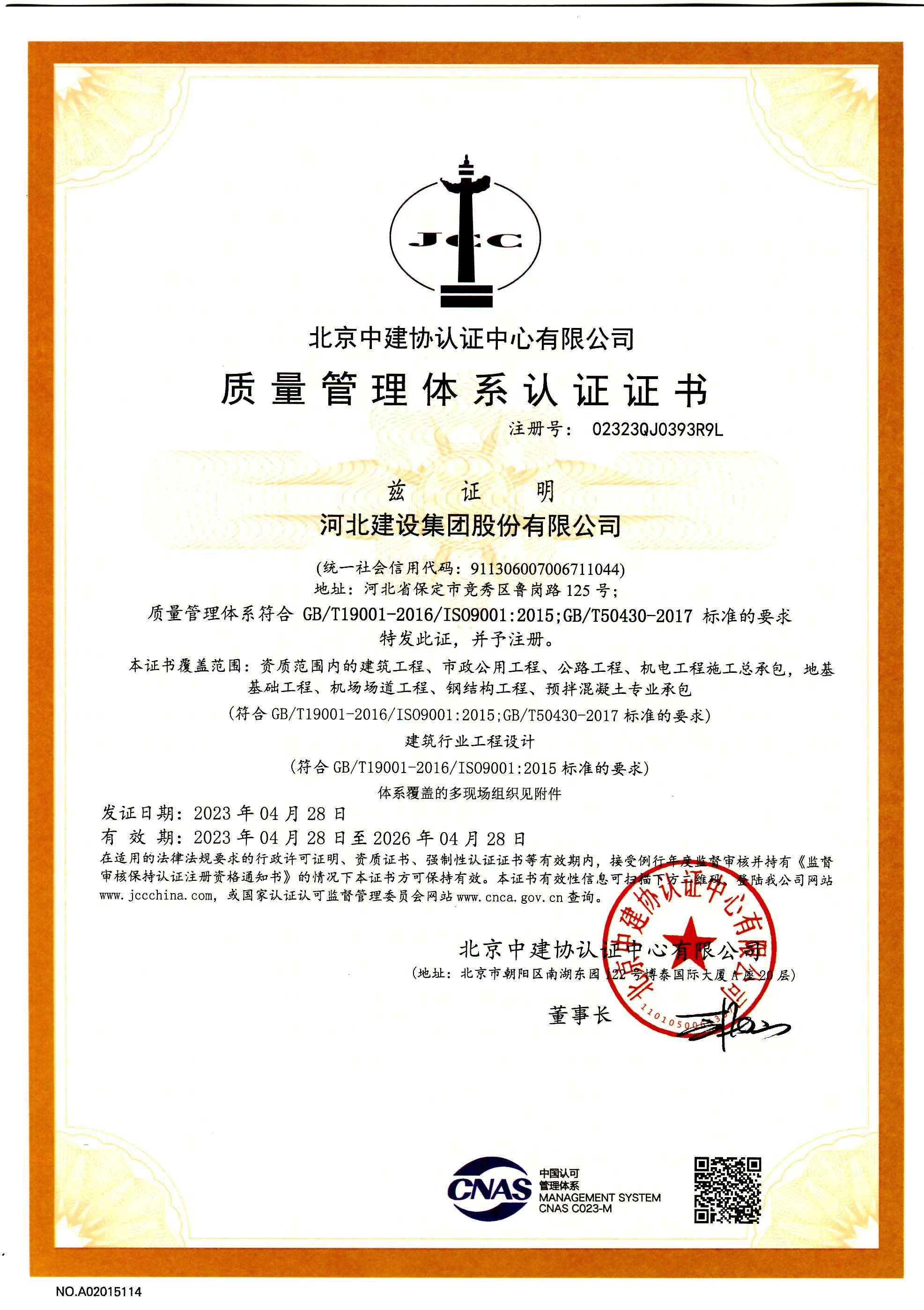 質(zhì)量管理體系認證證書(shū)